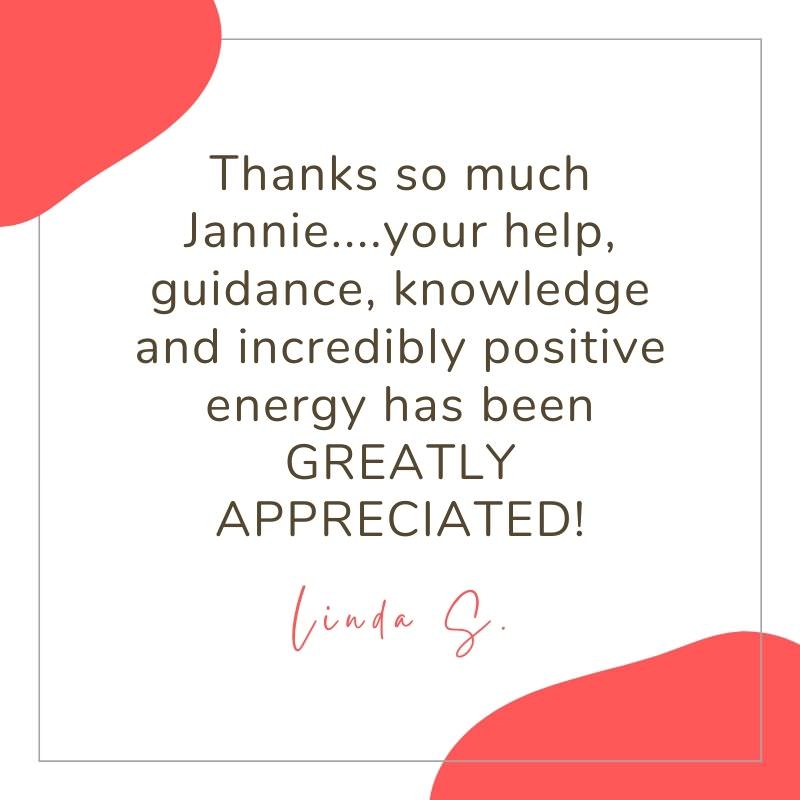 ![]() "Jannie is outstanding! Her care, support and communication are phenomenal." -Cyd P. |
